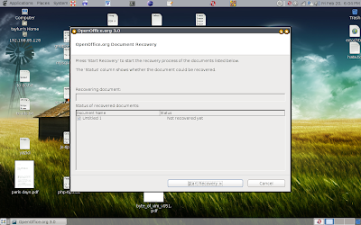 But when you click on a document type to create a new one, the application crashes and after a restart you are presented with a window to recover it: